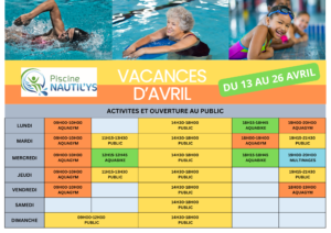 Venez nous retrouver à la piscine pendant les vacances de Pâques pour une séance de natation, d’aquabiking ou d’aquagym, entre amis ou en famille.